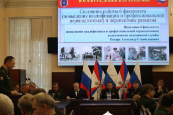 В ходе заседания был заслушан ряд рабочих вопросов и доклад начальника 6 факультета (повышения квалификации и профессиональной переподготовки) подполковника медицинской службы Александра Пекаря о состоянии и перспективах развития факультета.