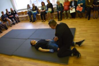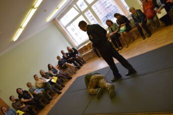 Полковник Воеводин особо подчеркнул, что отличие военного врача от гражданского проявляется в тех специальных знаниях и навыках, которые невозможно получить ни в одном другом учебном медицинском заведении. Военные медицинские специалисты обязаны проводить методическую подготовку личного состава, от вопросов гигиены для личного состава по призыву, до вопросов тактики и применения сил и средств медицинской службы для подчиненных сил, и отдельно здесь стоит тактическая медицина, которую врач не просто сам знает на высочайшем уровне, но и имеет должную методическую подготовку для обучения инструкторов тактической медицины. Подтверждая сказанное, Евгений Воеводин провел мастер-класс по оказанию первой помощи, включающий методы обучения детей оказанию помощи в экстремальных ситуациях с применением новейших технологий, а также продемонстрировал элементы тактической медицины.