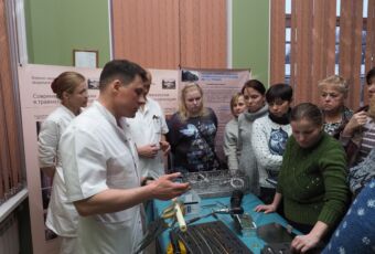 На кафедре активно используется новая форма обучения для операционных сестер, при реализации которой они имеют возможность получить не только теоретические знания, но и практические навыки работы с современными имплантатами и инструментами на муляжах. В ходе работы операционные сестры самостоятельно выполняли элементы внешнего и внутреннего остеосинтеза. На заключительном этапе занятия было проведено зачетное тестирование, которое продемонстрировало хорошее усвоение полученных знаний.