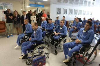 Чемпион России по баскетболу на колясках и серебряный призер чемпионата России по легкой атлетике в метании копья и толкании ядра Станислав Бураков, многократный чемпион России по баскетболу на колясках, участник лиги Чемпионов Василий Лайков м многократный победитель чемпионатов России по стрельбе из лука Алексей Горячев рассказали раненым свои жизненные истории: как они сами получили инвалидность, путь к принятию и пониманию, что жизнь многогранна и можно полноценно жить, невзирая на травмы. Спортсмены на своем примере рассказали, что самое главное – не сдаваться. «Не нужно отчаивается, жизнь продолжается, вы остались живы и это самое главное. Вы должны всегда идти вперед, двигаться и не останавливаться на достигнутом. Я уверен, что каждый из вас добьется огромных высот. Всем желаю здоровья, силы духа и хочу, чтобы вы верили в себя – это очень важно», — сказал Станислав Бураков.