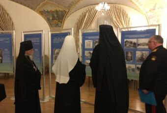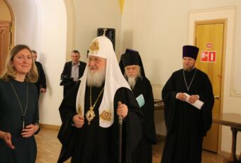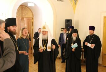 По окончании круглого стола Святейший Патриарх направился к выставке «Врачевание, милосердие, вера,» где настоятель храма Петра и Павла иеромонах Виталий (Морозов) рассказал об историческом церковно-госпитальном комплексе и современном этапе духовной жизни академии. По окончании рассказа Святейший Патриарх с радостью согласился на приглашение приехать в нашу Аlma mater.
