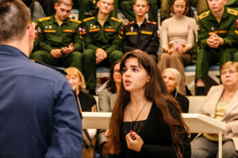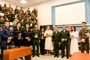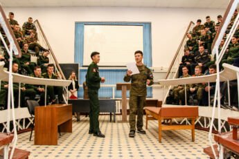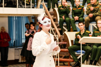 в наших мероприятиях не только как гости, но и как чтецы. Открыл парад чтецов Бегашев Максим, курсант 1 курса 3 факультета, который играл роль Григория Печорина, главного героя романа «Герой нашего времени», зачитывая его известнейшие монологи. Кроме того, отрывки из пьесы «Маскарад» сыграли курсанты 1 курса 4 факультета Астанков Александр и Филиппов Степан, курсант 2 курса 5 факультета Горковенко Валерия