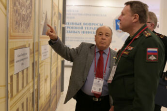 С поздравлениями в адрес кафедры обратился главный терапевт МО РФ полковник медицинской службы Михаил Паценко. Он передал участникам конференции приветствие от начальника ГВМУ МО РФ Дмитрия Тришкина, который отметил, что кафедра продолжает оставаться ведущим научным, клиническим и педагогическим центром в области инфекционных заболеваний.