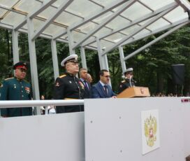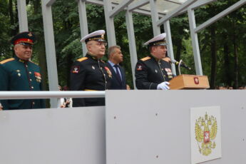 На историческом плацу Военно–медицинской академии в торжественной обстановке вручили студенческие билеты первокурсникам с единственного гражданского факультета академии — с факультета подготовки и усовершенствования гражданских врачей.