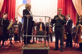 А в завершении вечера за дирижерский пульт встал полковник Павел Олексюк. «Это была мечта моего детства и спасибо вам, что она осуществилась», -сказал начальник военно-политического отдела, выражая благодарность художественному руководителю оркестра. «Марш Радецкого» под бурные продолжительные аплодисменты завершил этот вечер классической музыки.