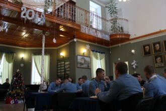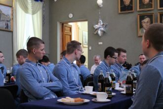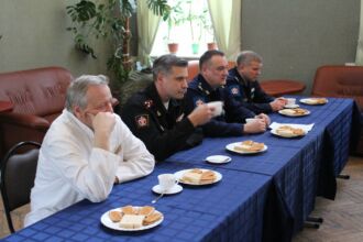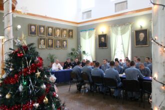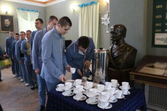 Накануне Нового 2019 года 29 декабря в зимнем саду кафедры психиатрии состоялось чаепитие. Военнослужащим, которым придется провести праздники на лечении, поздравили представители командования ВМедА им. С.М. Кирова. С пациентами пообщались заместитель начальника академии по военно-политической работе, полковник медицинской службы В.А. Швец, заместитель начальника ВМедА по клинической работе, полковник медицинской службы Н.Н.Рыжман, заместитель начальника клинического отдела, полковник медицинской службы С.С. Лящук и заведующий кафедрой психиатрии профессор В.К. Шамрей.