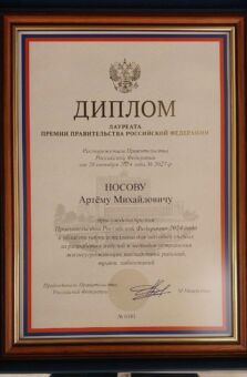 Особую гордость вызывает в этом перечне маститых ученых лицо майора медицинской службы Артема Носова, кандидата медицинских наук, начальника научно-исследовательской лаборатории (военной хирургии) – заместителя начальника научно-исследовательского отдела (экспериментальной медицины) научно-исследовательского центра Военно-медицинской академии, который удостоен одной из самых престижных в ученом мире России премий за разработку и внедрение комплекса современных средств оказания помощи для устранения жизнеугрожающих последствий ранений, травм и заболеваний в системы военного и гражданского здравоохранения.