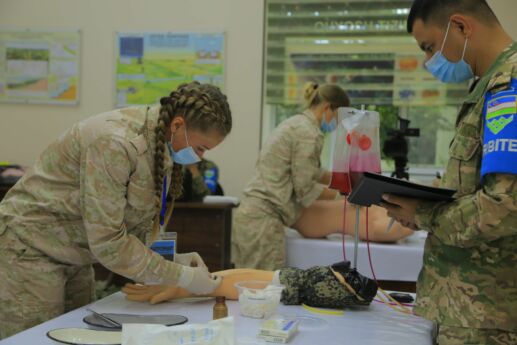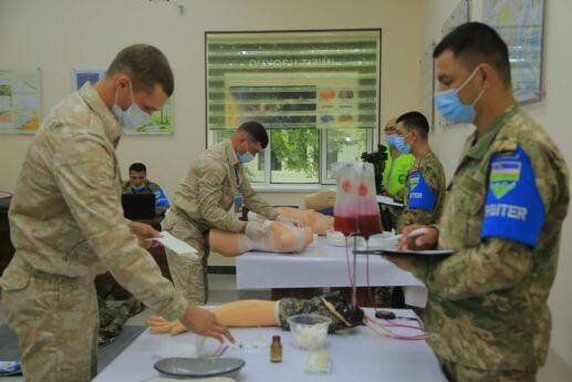 27 августа на высокогорной военной базе Фориш Министерства обороны Узбекистана продолжились соревнования военно-медицинского многоборья «Военно-медицинская эстафета в рамках Международных игр «Арми-2020» . Средний и младший медицинский персонал соревновался в прохождении полосы препятствий и выполнял нормативы по неполной разборке и сборке автомата АК-74. Участники конкурса преодолевали ров, лабиринт, забор с наклонной доской, траншеи с ходом сообщения, разрушенный мост и лестницы. Кроме того участники команд метали учебные гранаты, проползали под БТР-80 и переносили оружейные ящики весом до 20 кг. Ранее младший и средний медицинский состав команд состязался в умении качественно и быстро оказывать помощь раненым в стационарных условиях. Спортсмены Российской сборной выполнили специальное медицинское задание с минимальным колличеством штрафных очков. Военные медики показали на манекенах умение проводить сердечно-легочную реанимацию, катетеризацию мочевого пузыря, внутривенно вводили лекарственные препараты и демонстрировали различные техники наложения повязок.
