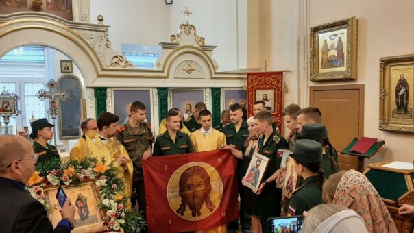По поручению Президента Совета Союза ветеранов войск РХБ защиты Вооруженных Сил Российской Федерации генерал-лейтенанта Черкасова Э. А., в целях обеспечения преемственности истории и памяти поколений, а также военно-патриотического и духовного воспитания курсантской и студенческой молодежи, оказания духовной поддержки, а также в знак благодарности всем военным медикам, принимавшим и принимающим участие в лечении и восстановлении здоровья воинов и ветеранов войск РХБ защиты, Татариновым В.В. были торжественно переданы в дар академии: копия знамени войск РХБ защиты, хоругвь с изображением «небесного покровителя войск» св. князя Андрея Боголюбского для вечного хранения в храме святых Апостолов Петра и Павла при Сухопутном военном госпитале военно-медицинской академии. Перед этими святынями, а также иконой с мощами св. князя Андрея Боголюбского, переданной Президентом фонда св. Вонифатия Мезенцевой Н.С., был отслужен молебен, а по окончании все присутствующие приложились к святыням и были окроплены святой водой. Отец Федор сердечно поздравил всех присутствующих с Престольным праздником и пожелал всем: «благословения Божьего и укрепления в вере, надежде и любви», а также еще раз поблагодарил за переданные святыни, которые, несомненно, будут духовным украшением храма.