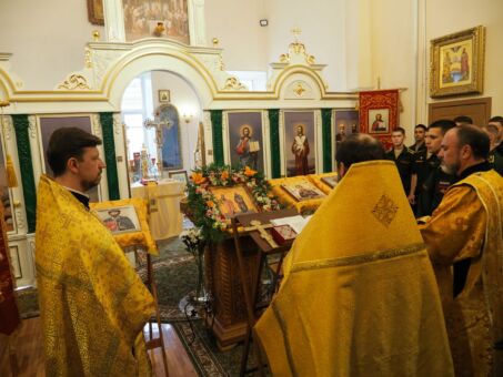 Божественную литургию возглавил настоятель храма иерей Андрей Ващенко. На празднике присутствовали курсанты, преподаватели и сотрудники академии. Хором курсантов руководил лейтенант Илья Новиков.