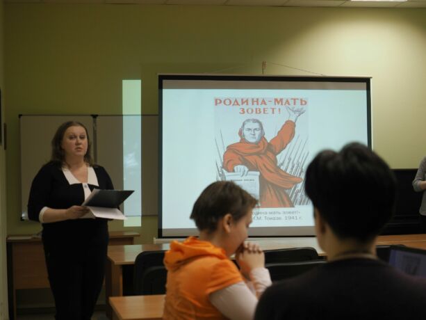 Первая встреча проекта «Музыкальная среда» была посвящена матерям войны. Ведущая Музыкальной среды, доцент кафедры русского языка Крайнова А.С. рассказала об уникальной роли матерей в непростое военное время: женщинам пришлось заменить мужей, ушедших на фронт на заводах, фабриках и в колхозах, и одновременно заниматься своим трудом – растить детей.
