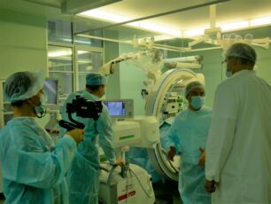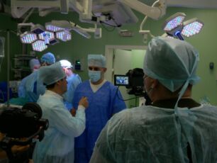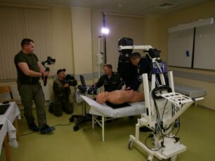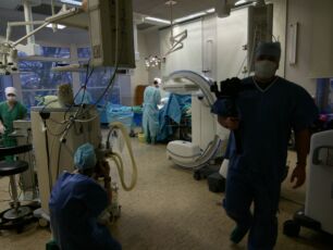 Съемочная группа ТРК «Звезда» взяли интервью у начальника академии генерал-лейтенанта медицинской службы Евгения Крюкова, который осветил деятельность ВМедА, рассказал о планах и перспективах развития. Заместитель начальника академии по клинической работе генерал-майор медицинской службы Богдан Котив показал гостям современную гибридную операционную в МПК и отметил, что технические мощности, а также высокопрофессиальный коллектив врачей позволяет творить в операционных чудеса. В этом программа «Военная приемка» смогла убедиться, посетив клиники военной травматологии и ортопедии, а также клинику нейрохирургии, где им удалось снять сложнейшие операции. Кроме того, съемки проводились на кафедре и в клинике рентгенологии и радиологии, а также в клинике физической и реабилитационной медицины, где журналисты увидели первые шаги пациента в экзоскелете.