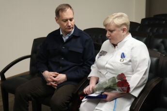 В преддверии награждения Виталий Маркевич который представил операционных сестер и рассказал, что каждая из собравшихся в зале- настоящая героиня, стоящая на страже здоровья пациентов. Роман Артюхов пообщался с медсестрами и руководством академии, пообещал поддержку и помощь во всех вопросах.