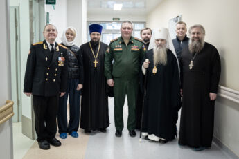 Митрополит обошел палаты, вручил 150 бойцам праздничные наборы, предоставленные фондом «Алеша», — подарочные кружки, фрукты, сладости. Православным воинам раздал иконки.