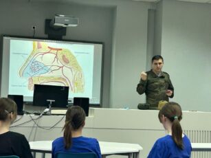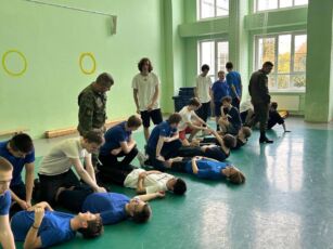 16 октября для школьников 11 медицинского класса школы №471 специалисты академии провели мастер-класс по оказанию первой помощи. Преподаватели кафедры организации и тактики медицинской службы полковник медицинской службы Евгений Воеводин и подполковник медицинской службы Денис Бокатюк показали ребятам основы оказания доврачебной помощи.