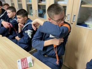 Ученикам девятых классов нахимовского училища наглядно продемонстрировали, как правильно и своевременно оказывать первую помощь себе и своему товарищу при наиболее часто встречающихся неотложных состояниях и травмах.