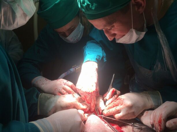 Открыл курс и выступил со вступительной лекцией, посвященной новым подходам к лечению огнестрельных ран, заместитель начальника кафедры ВПХ полковник медицинской службы В.И. Бадалов. Тематика следующих мини-лекций включала общие вопросы применения тактики Damage Control (доцент А.В. Гончаров), особенности лечения ранений шеи (доцент А.Н. Петров), груди (доцент В.В. Суворов), живота. Затем, в течение 6 часов, на двух операционных столах 10 хирургов ЮВО под руководством преподавателей кафедры ВПХ Военно-медицинской академии самостоятельно выполняли на биообъектах различные сложные операции и технические приемы, составляющие основу спасения жизни при ранениях шеи, груди, живота, таза и конечностей. Особое внимание было уделено борьбе с жизнеугрожающими последствиям травм – асфиксии, напряженному пневмотораксу, наружным и внутренним кровотечениям. Обучаемые успешно справились со специально создаваемыми сложными ситуациями в ходе оперативных вмешательств, избежав излишней кровопотери. Кроме того, благодаря качественной анестезии, проводимой специалистами госпиталя, каждому обучающемуся хирургу удалось ушить рану на работающем сердце животного. Впервые в истории курса одним из отрабатываемых учебных вопросов стало практическое (непосредственно у операционных столов) обучение операционных сестер госпиталя, проведенное главной сестрой клиники ВПХ Н.Е. Кармадоновой.