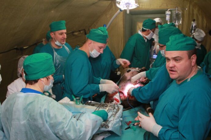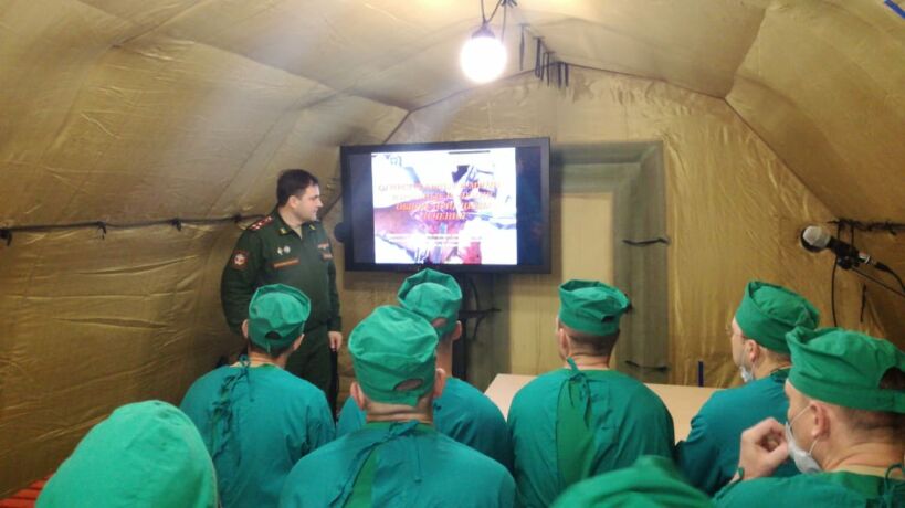 Формат проведения курса включает цикл мини-лекций по основным вопросам современной военно-полевой хирургии, а также, полный день хирургических операций «на живых тканях». Для создания реальной атмосферы оказания помощи раненым силами специалистов медицинской службы Южного военного округа на территории недавно построенного военного госпиталя в городе Анапа были развернуты 2 операционные в отдельных пневмокаркасных палатках.