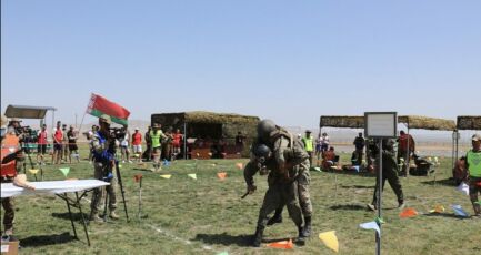 Российские военные медики, участвующие в конкурсе по полевой выучке «Военно-медицинская эстафета» Армейских международных игр-2021, прошли полосу специальных навыков на полигоне Фориш (Республика Узбекистан).