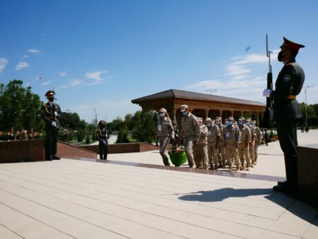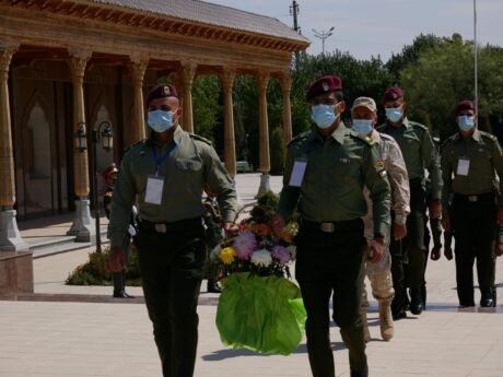 В день закрытия Международного этапа военно-медицинского многоборья «Военно-медицинская эстафета» сборные команды стран участниц соревнований прибыли в город Джизак, чтобы почтить память погибших в Великой Отечественной войне. Российскую делегацию возглавил ее руководитель, заместитель начальника Военно-медицинской академии по военно-политической работе полковник медицинской службы Владимир Викторович Лютов. Участники мероприятия посетили мемориал Павшим в городе Джизак и возложили цветы к памятнику «Скорбящая Мать». В Международном этапе военно-медицинского многоборья в рамках игр «Арми-2020» принимают участие 6 команд. Сегодня вечером на полигоне Фориш состоится торжественное закрытие «Военно-медицинской эстафеты».
