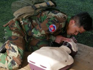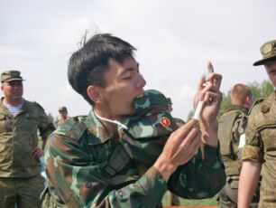 В четвертый день международных соревнований по военно-медицинскому многоборью «Военно-медицинская эстафета» в рамках Армейских международных игр – 2022 проверяли владение навыками специальной подготовки средним и младшим медицинским составом. Это один из самых зрелищных этапов соревнований