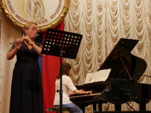 Выступили в концерте и сотрудники академии: к восторгу публики медицинская сестра клиники общей хирургии Ольга Тарасова и флейтистка академического оркестра Ольга Баранова исполнили песню из кинофильма «Гардемарины, вперед!».