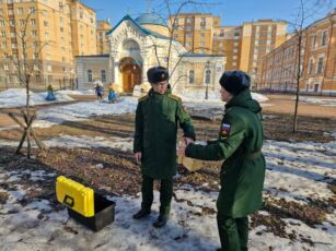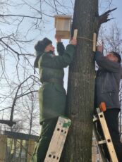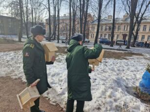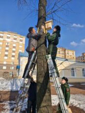 И в ознаменование наступившей весны, курсанты с удовольствием помогли воскресной школе при храме Святителя Николая развесить скворечники.