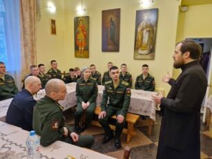 Для курсантов академии была проведена духовно-просветительская беседа, во время которой помощник начальника академии по работе с верующими военнослужащими отец Федор Кузнецов рассказал об устройстве православного храма, правилах поведения во время богослужения, а также об истории храмов, которые работают на территории Военно-медицинской академии. В беседе приняли участие курсанты факультета среднего профессионального образования.