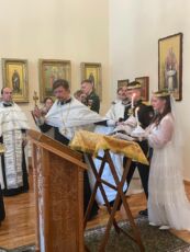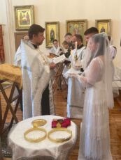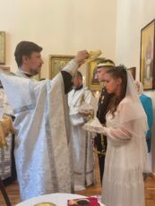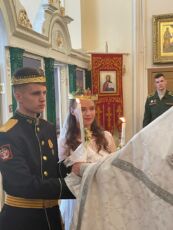 Венчание возглавил настоятель храма святых Первоверховных Апостолов Петра и Павла иерей Андрей Ващенко, который пояснил, что 8 июля, в праздник семьи и верности венчания не совершаются, потому что эта дата приходится на Петров пост. Поэтому церковь установила еще осенний праздник семьи и верности в память перенесения мощей святых Петра и Февронии в Свято-Троицкий монастырь города Мурома. «Этот день выбирают многие пары для совершения таинства вещания»,-сказал Андрей Ващенко. После праздничной литургии, в таинстве брака сочетались курсант 6 курса, факультета подготовки врачей для Военно-Морского Флота, ефрейтор Илья Соловьев и Елизавета Соловьева.