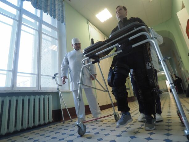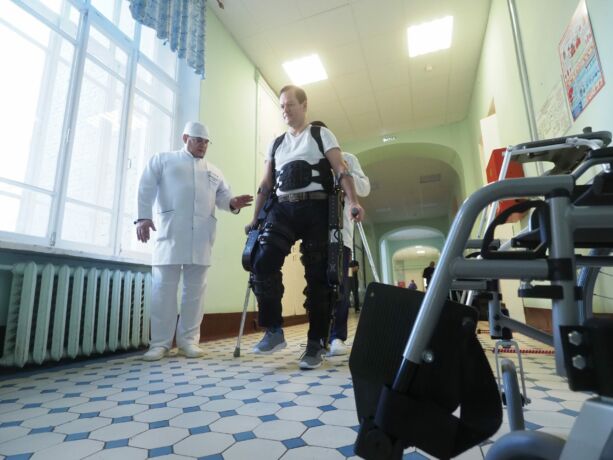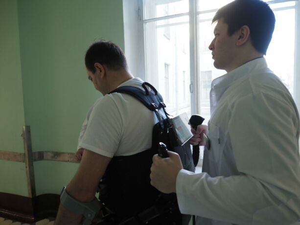 Коллектив кафедры и клиники военной травматологии и ортопедии военно-медицинской академии под руководством главного травматолога Министерства обороны Российской Федерации доктора медицинских наук профессора Хоминца В.В. выполняет научно исследовательскую работу по изучению возможностей и внедрению технологий роботизированной экзореабилитации пациентов, которым была проведена ортопедическая операция на суставах нижних конечностей. Исследования выполняются с использованием современного отечественного медицинского экзоскелета «Exoatlet». Клинические наблюдения велись у пациента через 3 недели после операции эндопротезирования правого коленного сустава. У мужчины было нарушение опороспособности нижней конечности и стереотипа ходьбы. После 8 занятий в экзоскелете пациент уверенно опирается на ногу, не хромает, может свободно передвигать без костылей.