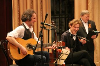 С теплым приветственным словом выступила заведующая кафедрой русского языка Нина Китунина. День Победы — праздник, который объединяет всех. Это важный день для всех нас, для всей России, для всех, кто помнит, сколько сил пришлось положить, чтобы очистить нашу землю от зла. В те времена, завершая войну, люди надеялись, что больше никогда не будет кровопролития, однако ход истории неумолим. В наши дни мужчины вновь встают плечом к плечу, чтобы грядущие поколения могли жить. «В этот вечер Виталий Ковалев и его друзья принесли нам добро, и мы хотим, чтобы вы тоже разделили его с нами, чтобы вы взяли эту частичку добра и унесли ее с собой», — после этих слов концерт начался.