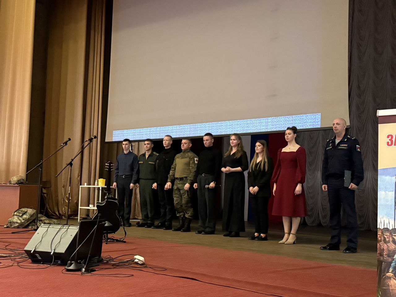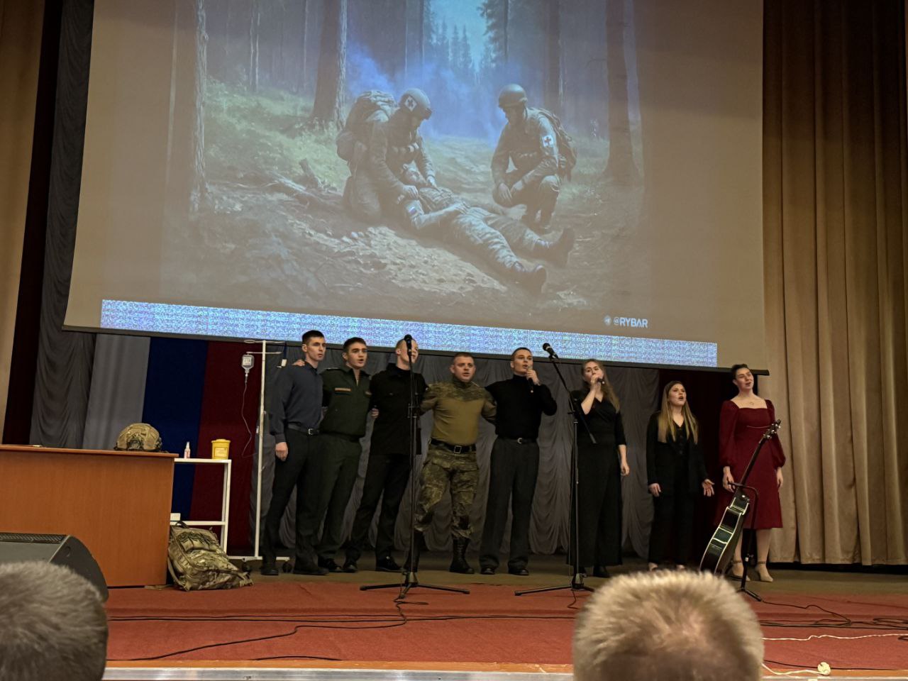 Зрители услышали реальные истории, которые произошли в зоне проведения СВО с военными фельдшерами. Также со сцены прозвучали стихи и песни о войне, любви и Родине. В зале присутствовали курсанты, преподаватели факультета, коллектив кафедры русского языка, а также выпускники, которые в настоящее время обучаются на факультетах высшего образования