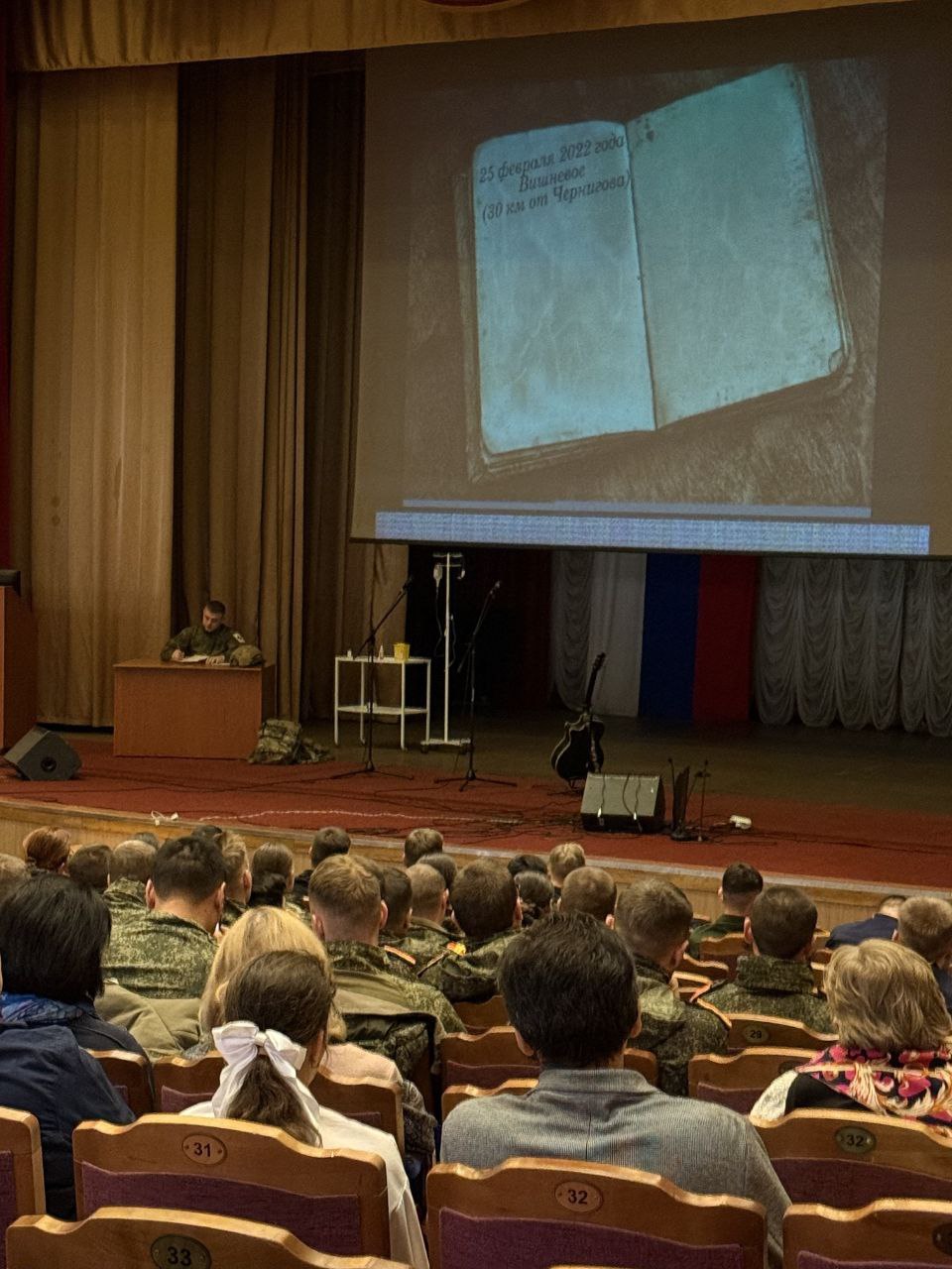 14 октября в клубе академии состоялся литературно-музыкальный вечер, подготовленный творческим коллективом 8 факультета. Программу под названием «Дневник фельдшера», ребята посвятили памяти выпускников факультета, погибших при выполнении воинского долга.