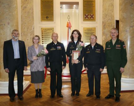 В торжественной обстановке Колонного зала штаба ВМедА в присутствии руководства академии – заместителя начальника академии по военно-политической работе полковника Павла Олексюка были награждены подполковник медицинской службы начальник кардиологического отделения клиники военно-морской терапии Илона Бершева