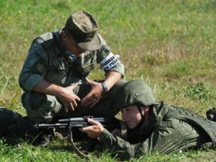 Будущий врач обязан уметь правильно и вовремя оказать первую медицинскую помощь. В условиях, приближенных к военно-полевым, новобранцы отрабатывают специальные навыки по наложению первичной повязки, кровоостанавливающего жгута и эвакуации раненного с поле боя. Они учатся пользоваться индивидуальными войсковыми аптечками и другими подручными средствами, которые могут пригодиться в боевых условиях.