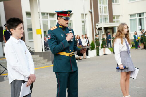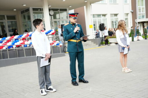 После торжественной линейки, посвященной началу учебного года, кадетские военно-медицинские классы 5 «М» и 6 «М», (которые курирует Военно-медицинская академия), встретились с почетным гостем — военным врачом, участником СВО, старшим лейтенантом медицинской службы Вадимом Грозиным.