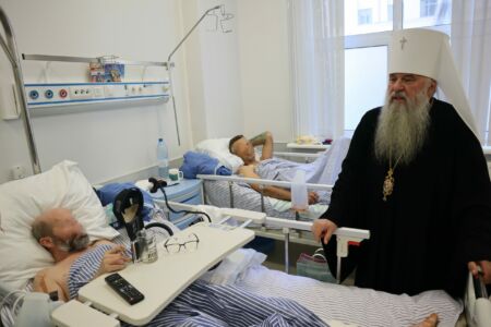 23 июня, в великий праздник Святой Троицы клинику военно-полевой хирургии посетил с визитом митрополит Санкт-Петербургский и Ладожский Варсонофий. Владыка постоянно приезжает в академию, чтобы передать раненым подарки, благословить на выздоровление и сказать ободряющие слова.