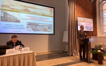 С программным докладом «185-летняя история 1 кафедры ТУВ (ранее — кафедра госпитальной терапии) и вклад ее сотрудников в развитие медицины России» выступил начальник кафедры полковник медицинской службы, доктор медицинских наук, профессор Владимир Салухов, который рассказал о различных этапах развития кафедры, о вкладе в ее становления таких блестящих терапевтов, как Мяновский, Здекауэр, Эйхвальд, Пастернацкий, Сиротинин, Молчанов, Шурыгин и другие.