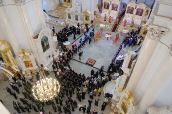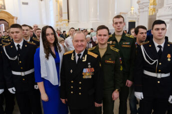 В Татьянин день сотрудники и курсанты Военно-медицинской академии приняли участие в божественной литургии в Смольном соборе
