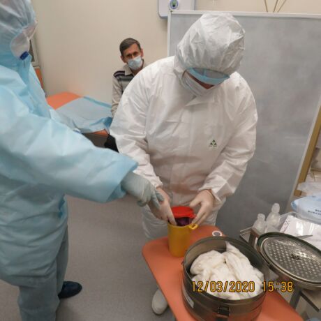 12 марта 2020 года в консультативно-диагностической поликлинике Лечебно-диагностического центра была проведена тренировка в целях отработки практических навыков работы медицинского персонала в случае поступления пациента с подозрением на новую коронавирусную инфекцию. Тренировка была проведена под руководством клинического отдела и отдела санитарно-эпидемиологического надзора академии.