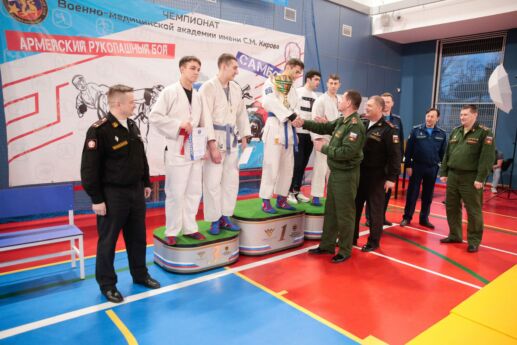 Стали известны имена победителей чемпионата Военно-медицинской академии по армейскому рукопашному бою, который прошёл 24-25 марта в спорткомплексе академии. В церемонии награждения победителей принял участие Врио заместителя начальника академии, полковник медицинской службы Андрей Леонидов.