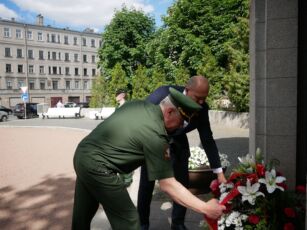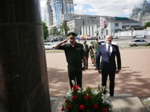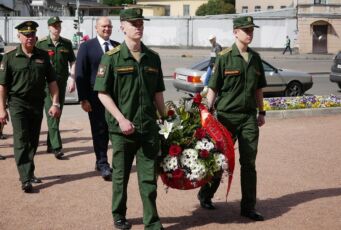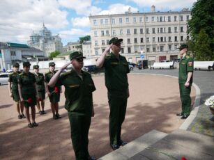 На площади Военных Медиков 22 июня прошло памятное мероприятие с возложением цветов к монументу военным медикам, павшим в войнах. К курсантам обратился заместитель начальника Военно-медицинской академии по военно-политической работе полковник медицинской службы Владимир Лютов.
