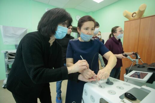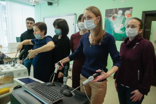 В первый день участники курса под руководством инструкторов из числа наиболее опытных специалистов в этой области отработали навыки на виртуальном симуляторе лапароскопии ЛАП-Сим с функцией обратной тактильной связи и на системах минимального инвазивного тренинга (СМИТ). На следующий день в учебных операционных врачи смогли провести диссекцию почки и органов брюшной полости на биологическом материале. В результате обучения специалисты приобрели навыки для самостоятельного выполнения лапароскопических операций.