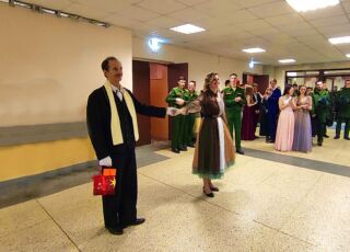 В актовом зале в это же время проходил праздничный концерт, подготовленный силами талантливой академической молодежи. В этом году курсанты и студенты адаптировали для зрителей сценарий сказки «Двенадцать месяцев». Со сцены звучали песни на разных языках, зрители знакомились с национальными и классическими танцами.