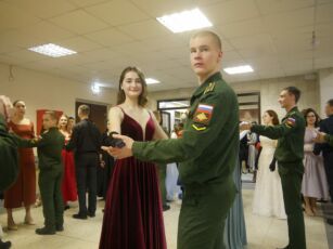 Курсанты, студенты и личный состав академии кружили вальс под аккомпанемент оркестра Военно-медицинской академии.