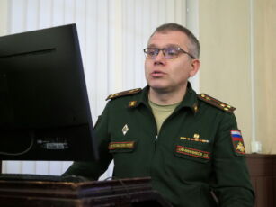 С докладом о планах внедрения медицинских информационных систем в Военно-медицинской академии выступил начальник центра информационных технологий подполковник медицинской службы Олег Гаспарян.