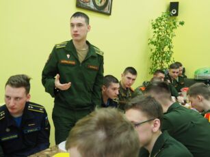 Перед своим выступлением полковник Лютов провел небольшой интерактив с ребятами, дав им самим возможность ответить, что такое воинская честь. Обращаясь к присутствующим, он отметил, что курсанты, как защитники Отечества, ставшие на «дорогу чести», должны осознавать своё высокое предназначение, испытывать чувство гордости за офицерское звание и нести ответственность за его чистоту, приумножать офицерские традиции, а также соизмерять свои действия, поступки, поведение и образ жизни с требованиями воинской этики, а также держаться друг за друга и всегда приходить на выручку.