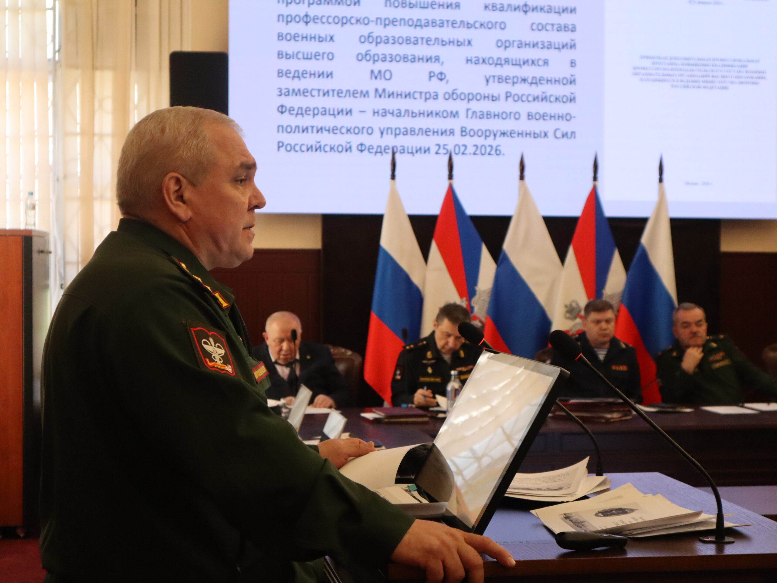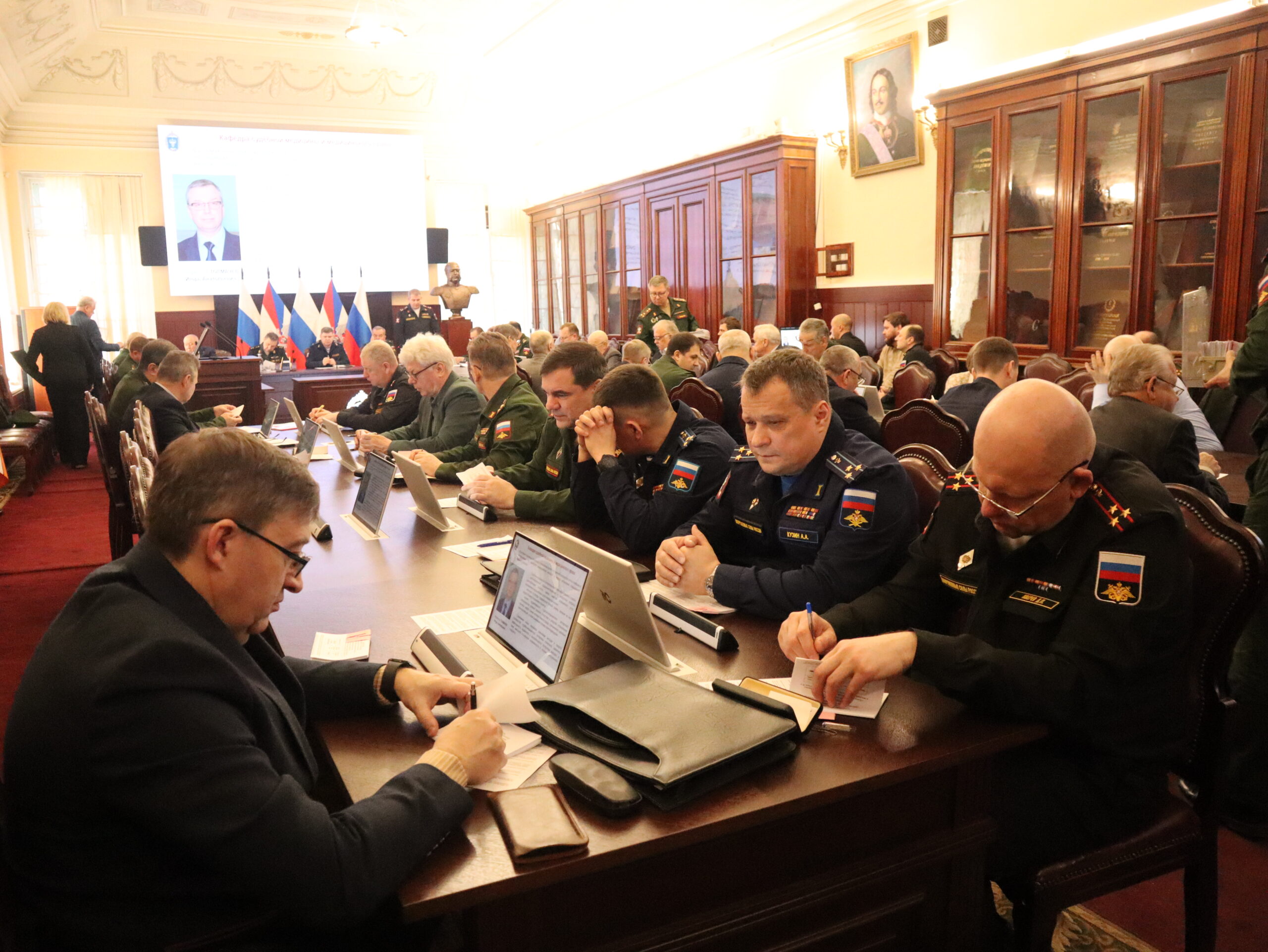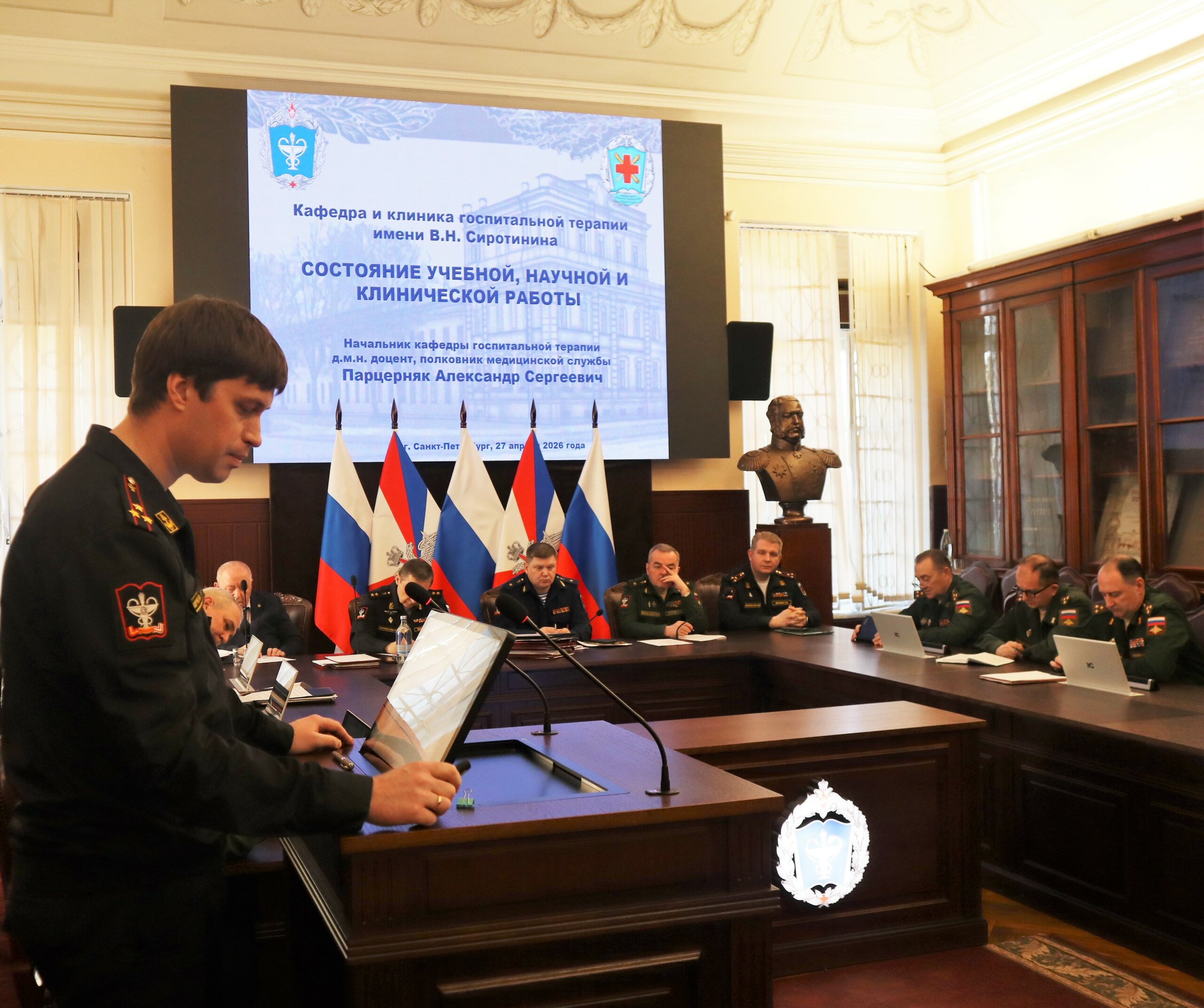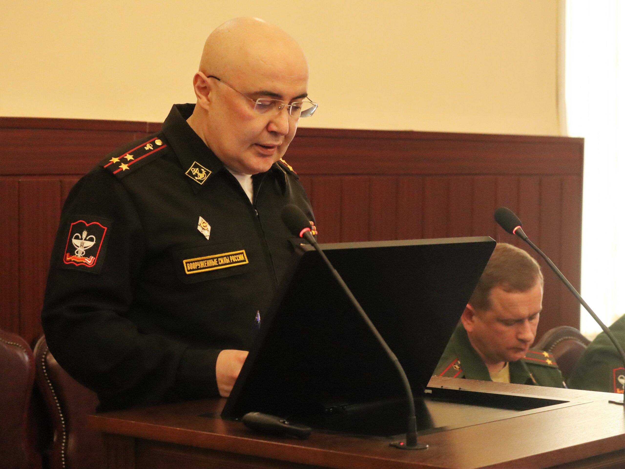 Заседание продолжилось выступлениями заместителя начальника Академии по учебной работе полковника медицинской службы Руслана Макиева, начальника отдела организации научной работы и поготовки научно-педагогических кадров полковника медицинской службы Дмитрия Овчинникова и начальника учебно-методического отдела полковника медицинской службы Ивана Лобачева по текущей рабочей повестке.