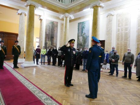 16 января 2021 г. в колонном зале Военно-медицинской академии состоялось торжественное приведение к военной присяге 13 призыва научной роты. С приветственным словом к собравшимся обратился начальник Академии генерал-майор медицинской службы Евгений Крюков. Он пожелал ребятам успехов в научной деятельности и достойного несения военной службы. Евгений Крюков обратился также с поздравлениями к родственникам солдат, ставших операторами научной роты.