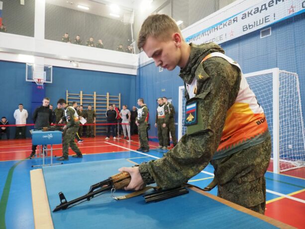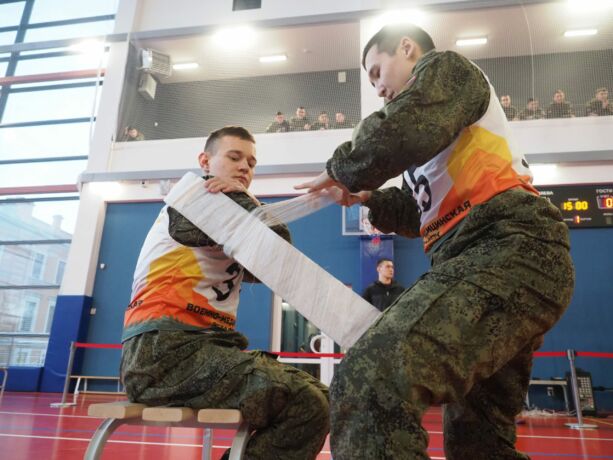 В военно-медицинской спортивной эстафете приняли участие курсанты 2, 3, 4 и 8 факультетов. Победитель определялся по итогам нескольких этапов: сборка-разборка автомата, наложение шины и жгута и переноска раненых. Лучшие результаты показала команда 4 факультета, а юнармейцам была предоставлена возможность попрактиковаться в сборке-разборке оружия вне зачета.